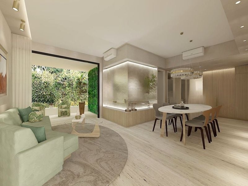 Step into a world of elegance and sophistication at ARINA EAST RESIDENCES, where abundant natural light floods through floor-to-ceiling windows, illuminating the stunning double-volume living space. The bright and airy ambiance is complemented by designer finishes and marble-look flooring, creating a serene oasis amidst the urban landscape. Enjoy breathtaking views of the city skyline from your expansive balcony, perfect for unwinding after a long day.