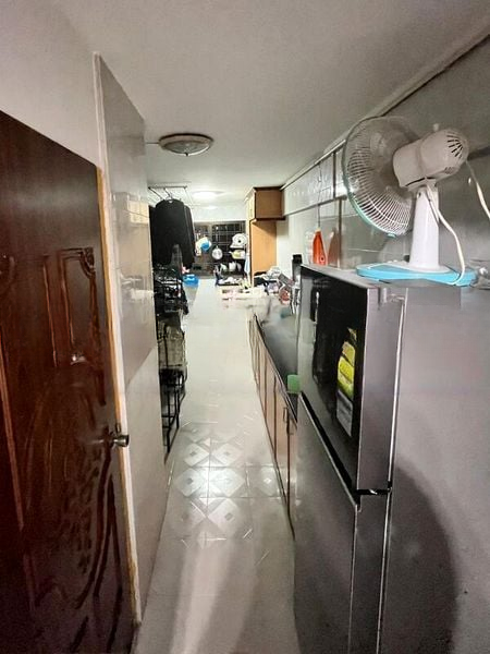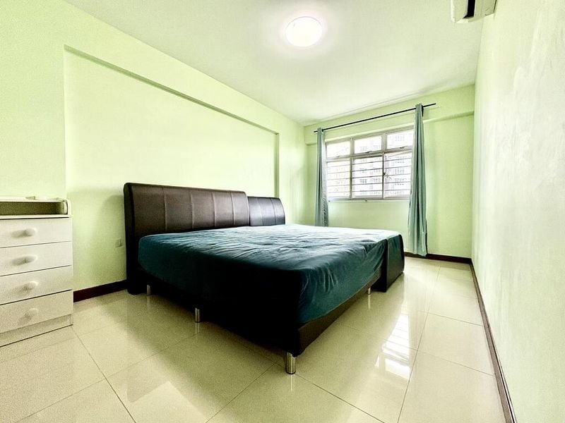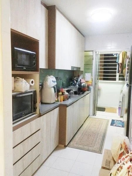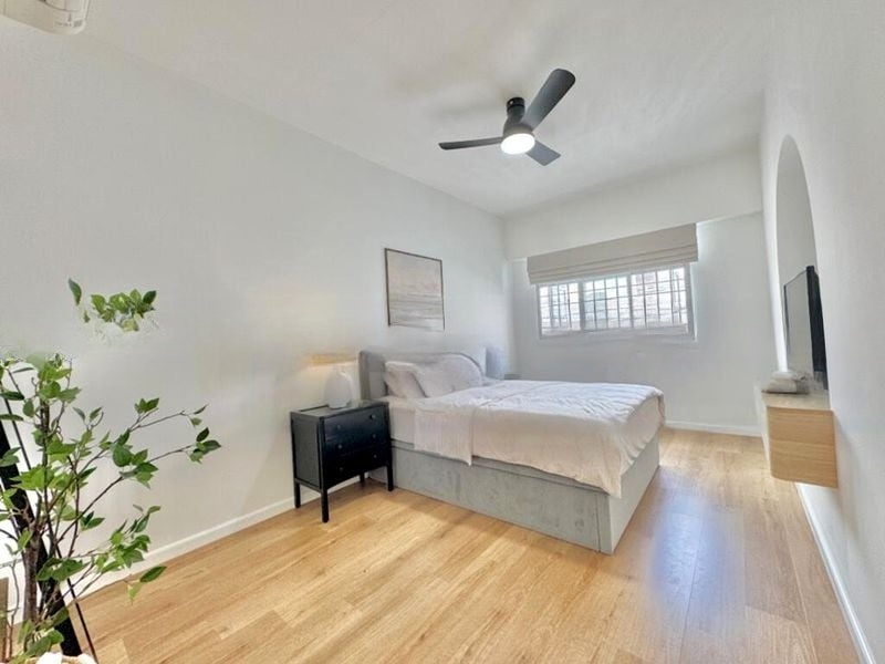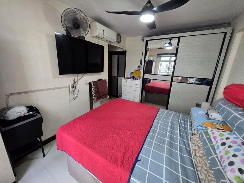 This well-maintained unit features three spacious bedrooms, including a cozy room with a built-in wardrobe and study desk. The vibrant galley kitchen is equipped with modern appliances, including a built-in microwave and oven, ensuring convenience for your culinary adventures. The blue-themed bathroom, with its stylish tiles and mirrored vanity cabinet, offers a refreshing retreat.