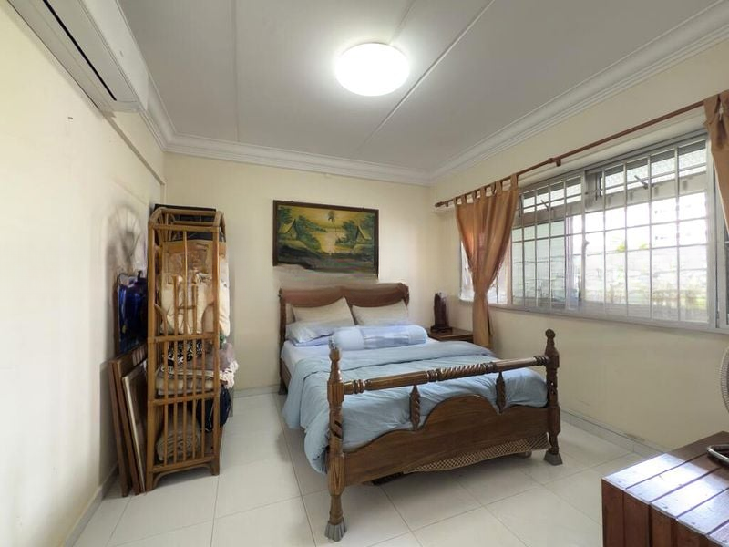 Step into a bright and airy oasis at 503 Pasir Ris St 52, where abundant natural light dances across the spacious open layout. The inviting ambiance is enhanced by wooden flooring throughout, complemented by stunning views of greenery and nearby residential buildings. The industrial-style kitchen, featuring stainless steel counters and open shelving, adds a modern touch, while the sunken floor bed area in the bedroom creates a unique and cozy retreat.