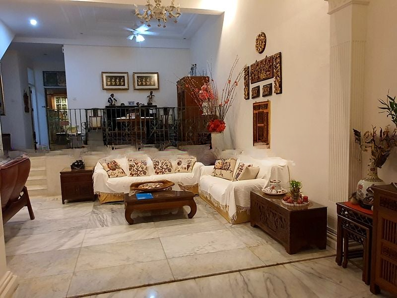 Step into this charming landed property and feel the warmth of a functional home. The moderate natural light filters through the patterned curtains, illuminating the tiled flooring and inviting you to explore further. The views of the lush greenery and quiet residential street create a serene ambiance, perfect for unwinding after a long day.